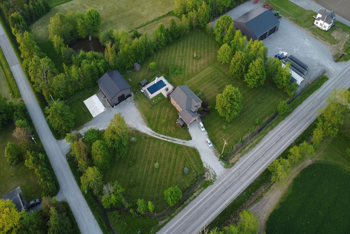 Set on just under 2 acres, this beautifully maintained corner property offers space, privacy, and endless possibilities with two separate entrances -- one off Forks Road and another off Deeks Road. The custom built (2012) raised bungalow is bright and welcoming, featuring an open-concept kitchen with granite countertops that flows seamlessly into the dining and living areas with vaulted ceilings and abundant natural light. The main floor offers three spacious bedrooms, while the lower level adds two additional bedrooms, perfect for guests or an extended growing family. Enjoy outdoor living at its finest with a sparkling 18 ft x 36 ft inground pool, firepit and three sheds for storage, pool and utility. There is also an impressive 40 ft x 50 ft workshop newly built in 2020 and complete with a full-height 20 ft x 40 ft loft and a 15 ft x 20 ft media room. The shop is equipped with 200-amp service, two man doors, and two roll-up doors -- one 8 ft high and the other 12 ft high making it easy to load, store, or work on almost anything. For added convenience, the home includes an attached double-car garage, while outdoor enthusiasts will appreciate the 25 ft x 42 ft concrete pad at the side of the shop with gas and 50-amp hook-up, ideal for an RV, trailer, or recreational vehicles. Enjoy your morning coffee beside your coy pond or a glass of wine under the breathtaking sunsets to the west. This property combines comfort, functionality, and freedom in a peaceful country setting, yet remains just minutes from town conveniences. Its an exceptional opportunity for families, hobbyists, or anyone seeking the perfect balance of home, work and lifestyle.